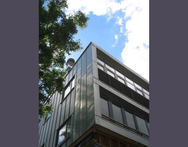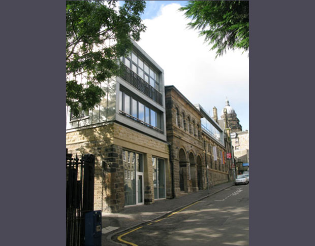 A disused Victorian swimming baths within the centre of Edinburgh has been converted into a mixed use development, including a workshop and gallery spaces for Dovecot Studios, Scotland's leading tapestry company. The tapestry workshop occupies the main pool space, with display on the gallery above and support spaces to the sides, screened by the vibrant yarn libraries which add a visual backdrop to the main volume. The exhibition spaces have been sited below the original pools, where natural light was not so critical. Office spaces are arranged within the ladies pool and, finally, residential flats wrap around and above the other uses. Externally the existing stone walls of the original building are retained, with new volumes added as simple zinc clad boxes maximising light, space and views.
