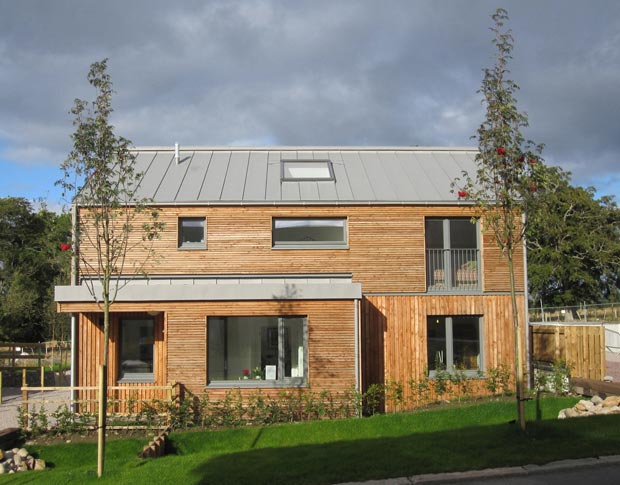 The houses were designed to allow adaptation by the occupants, for example, allowing for change in family size, single occupation or home working. The suggested plan arrangements allow partitions to be added to form rooms, if required, or leave as open plan. Construction was based on a timber frame with locally sourced larch cladding.