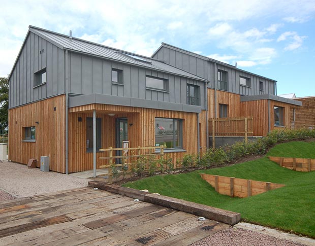 The housing fair near Inverness opened in 2010 and was an estate of individual architect-designed houses that had been shortlisted from an initial competition to promote innovation and sustainability in rural and suburban housing. Malcolm Fraser Architects designed a detached and a semi-detached house which allowed them to continue their research into modern housing.